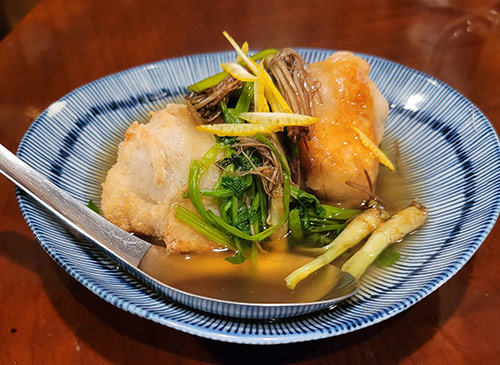 井の頭通り沿いの建物の2階にあるお店。 「花道」という店名や外からの印象で「昔ながらの元気なオヤジ(花道)がやっている賑やかな大衆居酒屋」を想像していたら、入ってびっくり!こじゃれた古民家風の日本酒バー。 店主・店員の人当りも良く、丁寧な接客が嬉しい。 窓際の席からは向かいにある丸井、スーツカンパニー、ドン・キホーテなどの「吉祥寺View」を一望できる。 トイレに行くと、店名の「花道」の由来が推測できる。