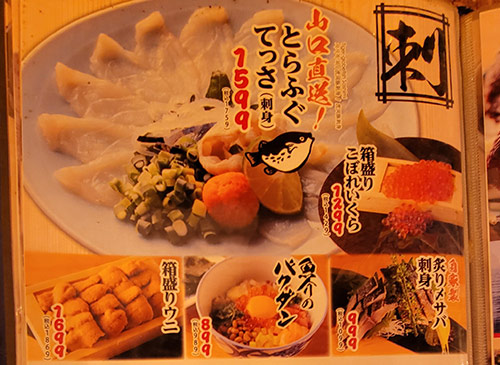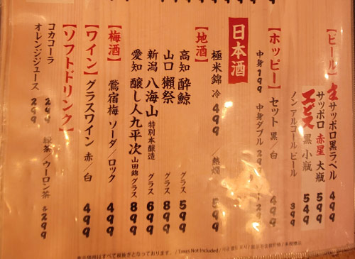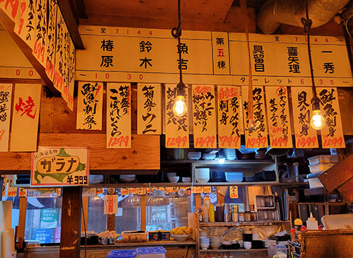 メインは海鮮料理だが、その他にも串焼き、うどん、そば、ラーメン丼ものとバカみたいにメニューが豊富。