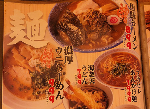 メインは海鮮料理だが、その他にも串焼き、うどん、そば、ラーメン丼ものとバカみたいにメニューが豊富。